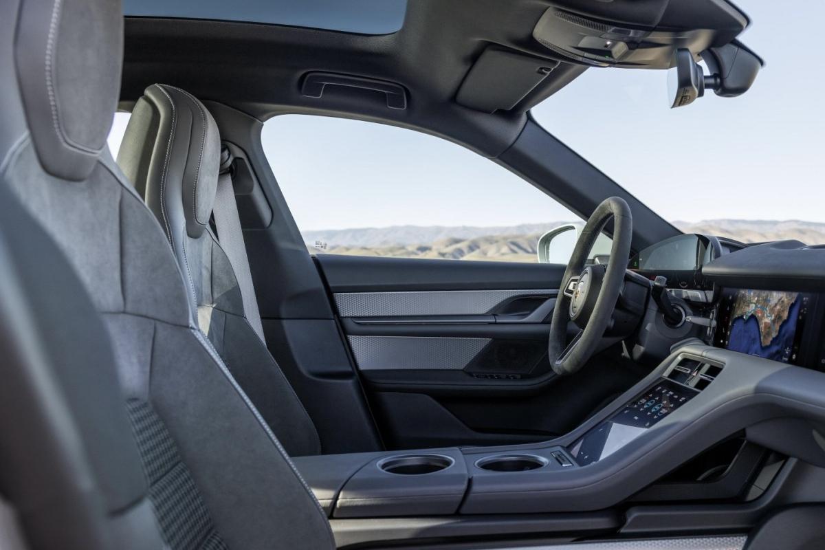 Dat pure gaat verder in de aandrijflijn van de basis-Taycan. Begrijp ons niet verkeerd: ook die kreeg er flink wat pk’s bij ten opzichte van het model van voor de facelift. Zo hoestte de lichtst gemotoriseerde Taycan bij z’n lancering nog 326 pk op en dat stijgt nu naar 408 pk en 410 Nm koppel. Dat is genoeg om van 0 naar 100 km/u te gaan in 4,8 seconden en een topsnelheid te halen van 230 km/u, al is het maar de vraag of je dat anno 2025 wel echt genoeg vindt voor een EV. Een dikke 30.000 euro aan MG4 biedt tegenwoordig meer pk’s dan deze Porsche.